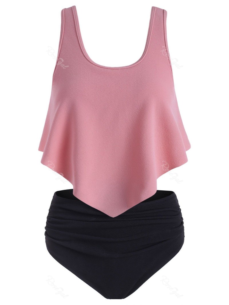Textured Flounce Ruched Tankini Swimsuit