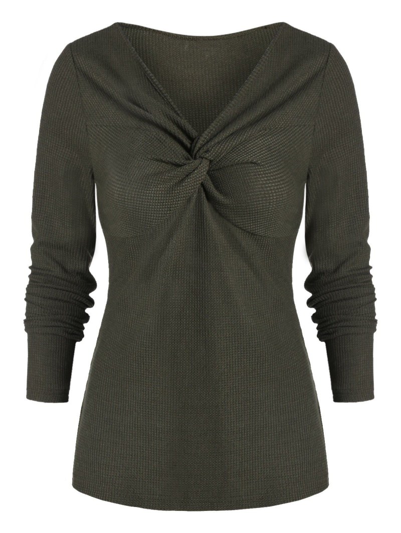 Twist V Neck Long Sleeve T Shirt