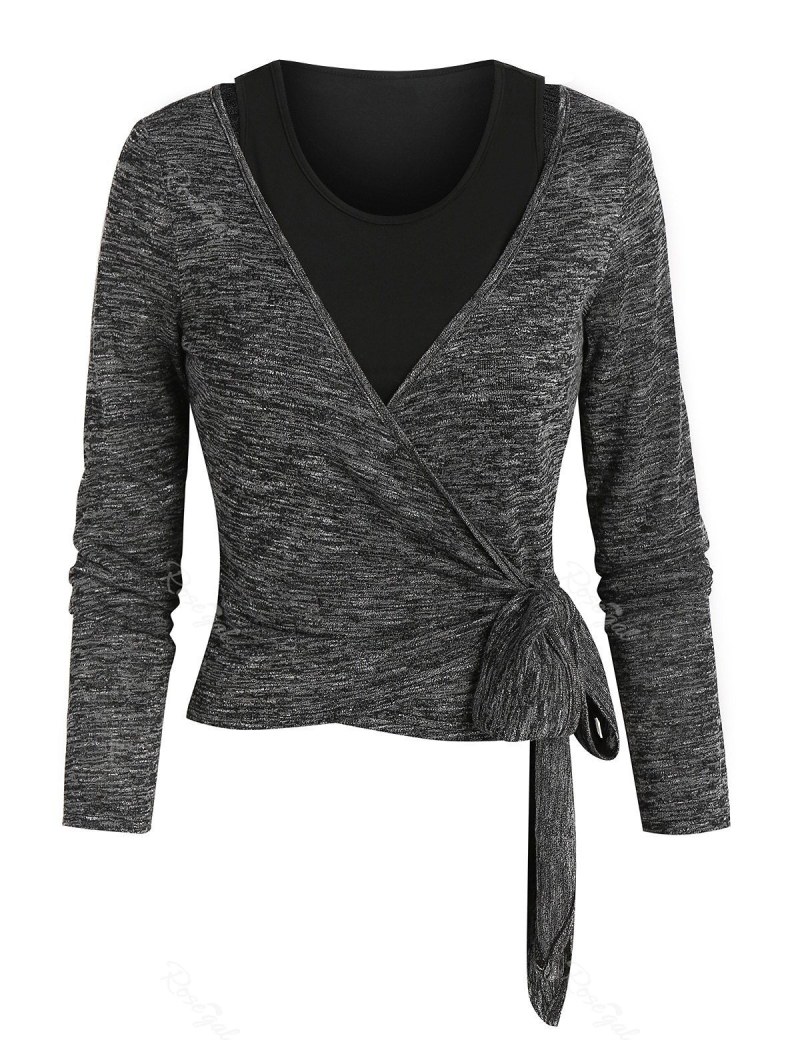 Knotted Heathered Wrap T-shirt And Cropped Tank Top