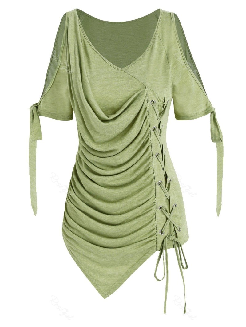 Cold Shoulder Lace-up Asymmetrical Ruched T-shirt