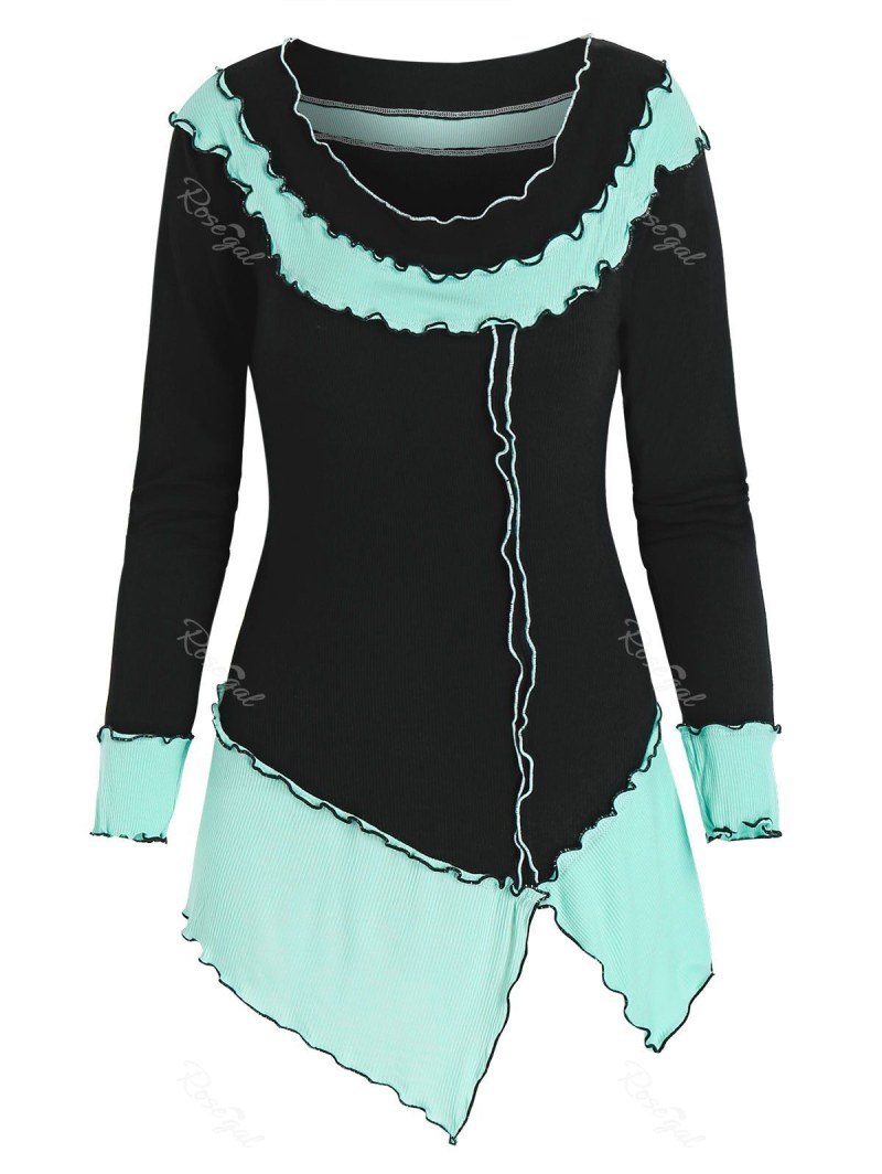 Two Tone Front Slit Long Sleeve T Shirt
