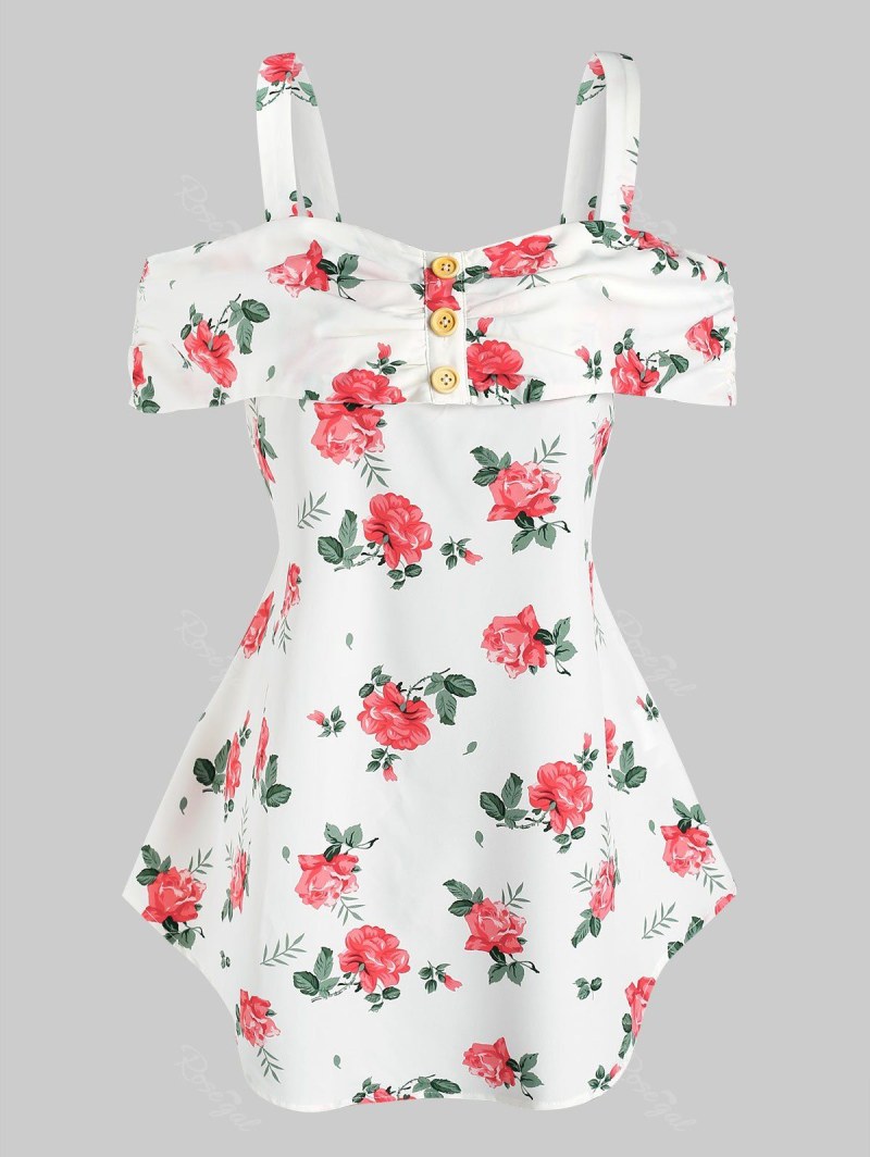 Cold Shoulder Floral Print Flounce T-shirt