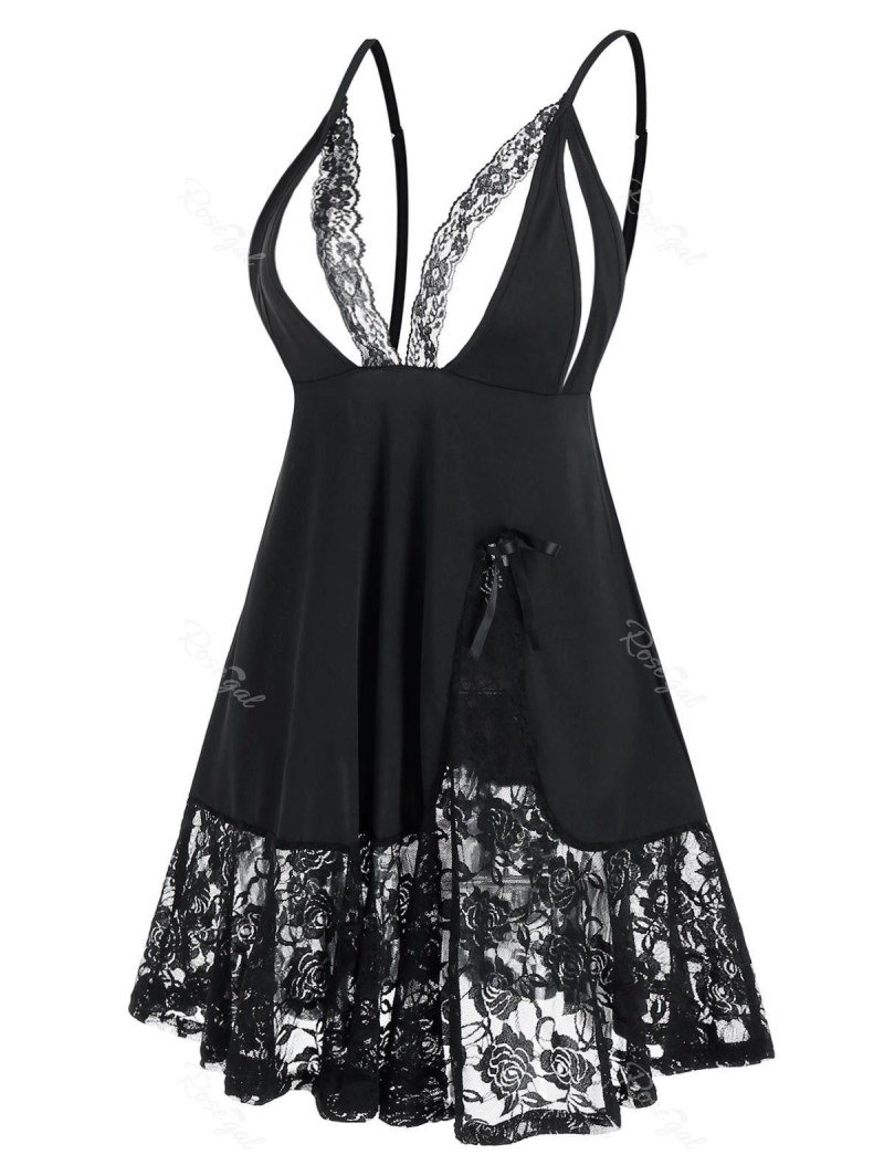 Flower Lace Insert Spaghetti Strap Bowknot Babydoll